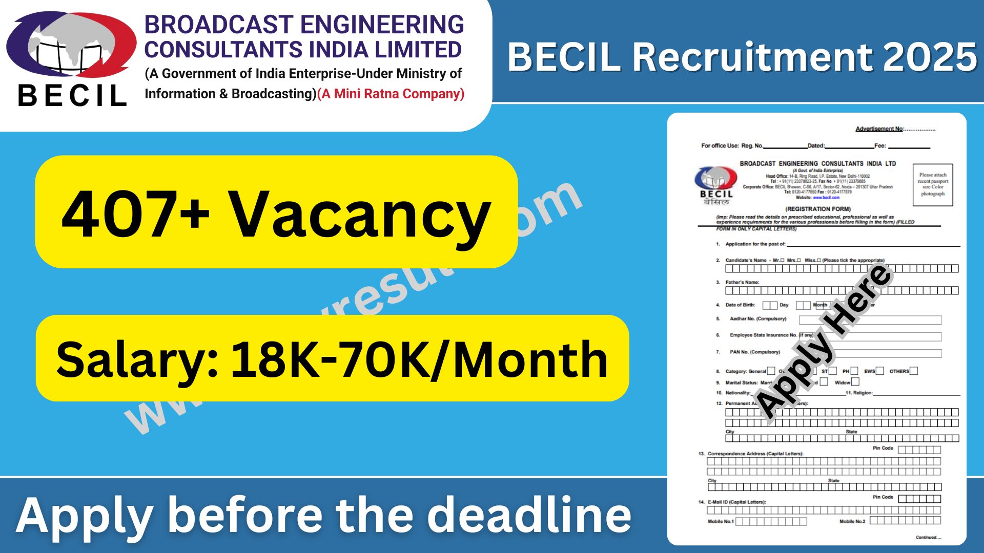 - BECIL is not responsible for postal loss/delay in receipt of applications.