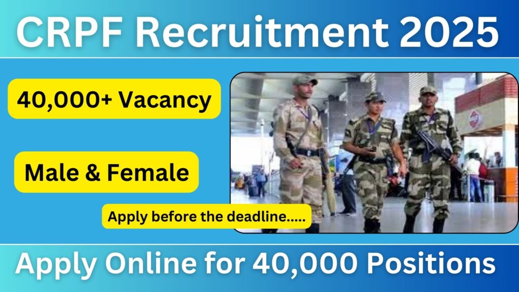 CRPF Recruitment 2025: The Central Reserve Police Force (CRPF) has released the notification for CRPF Recruitment 2025, inviting applications from eligible candidates for various positions. This recruitment drive presents an excellent opportunity for aspirants looking to join one of India’s most esteemed paramilitary forces.