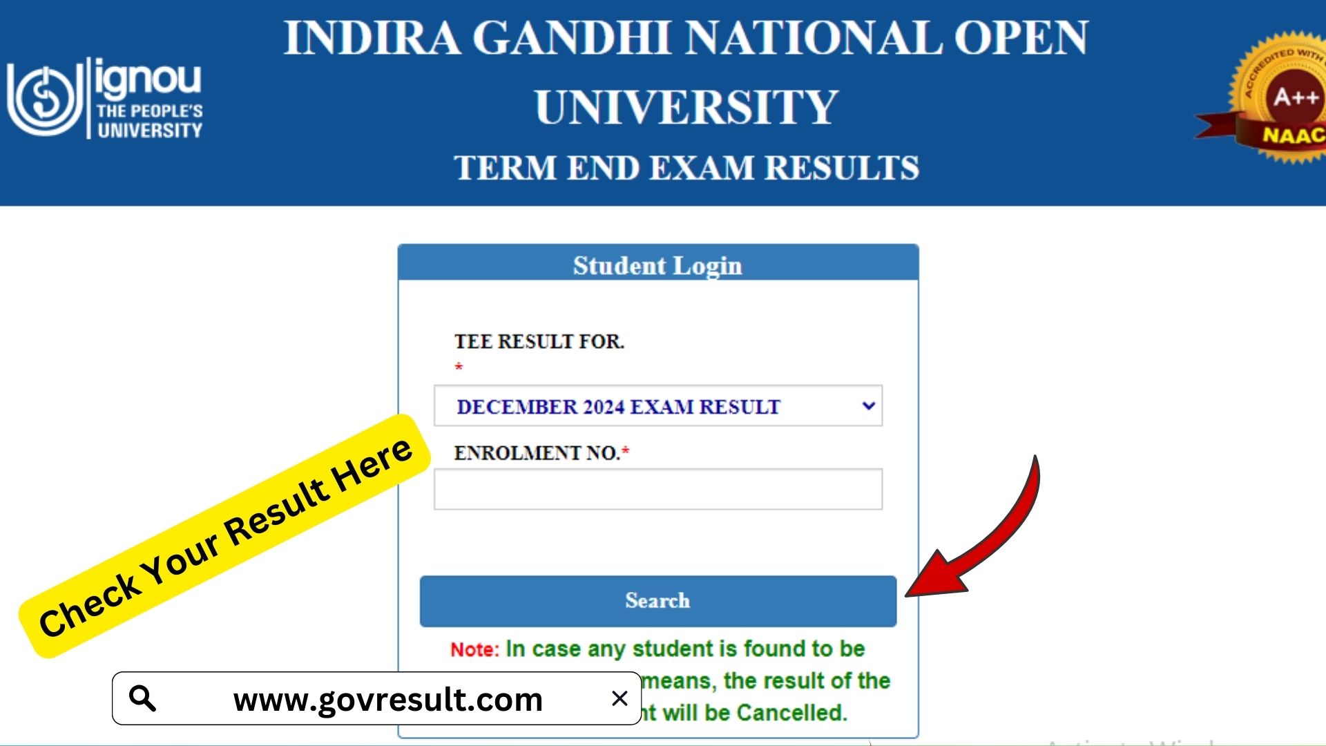 You can check your result by visiting the official IGNOU result portal at IGNOU Result December 2024, entering your enrollment number, and submitting the details.