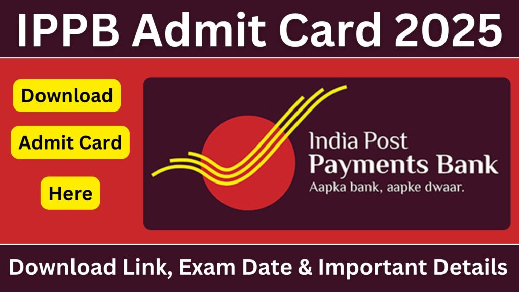 India Post Payment Bank Admit Card 2025: The India Post Payment Bank (IPPB) has released the Admit Card for the 2025 Examination for various posts. Candidates who have successfully applied for the recruitment process can now download their admit card from the official website. The admit card is a crucial document required to appear for the exam, and candidates must carry it along with a valid ID proof to the examination center.